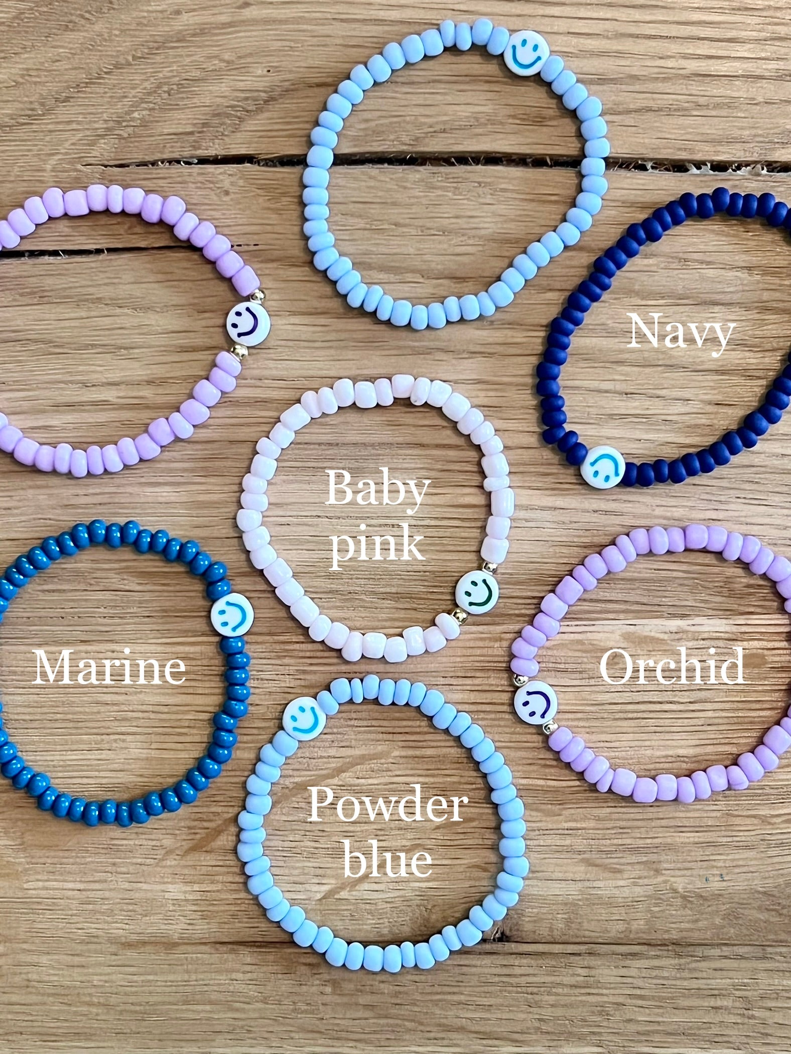 - 6mm white acrylic happy face bead (subject to fading over time)